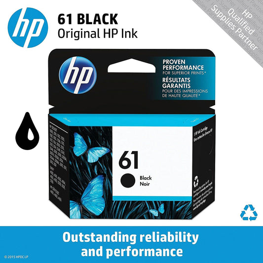HP 61 Black Ink Cartridge | Works with DeskJet 1000, 1010, 1050, 1510, 2050, 2510, 2540, 3000, 3050, 3510; ENVY 4500, 5530; OfficeJet 2620, 4630 Series | Eligible for Instant Ink | CH561WN