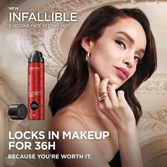 L’Oréal Paris Infallible 3-second Setting Spray, Up to 36H wear, Long-Lasting Fixing Spray for Face, Lightweight Setting Spray, Transfer proof, Waterproof 75ml