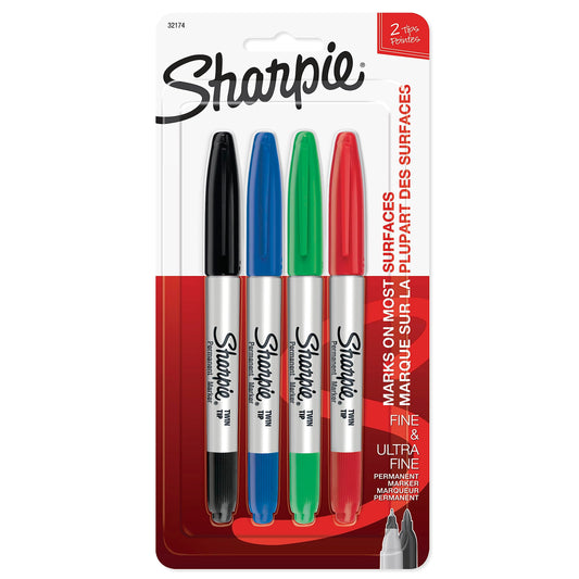 Sharpie Twin Tip Permanent Markers, Fine and Ultra Fine, Black, 2 Count