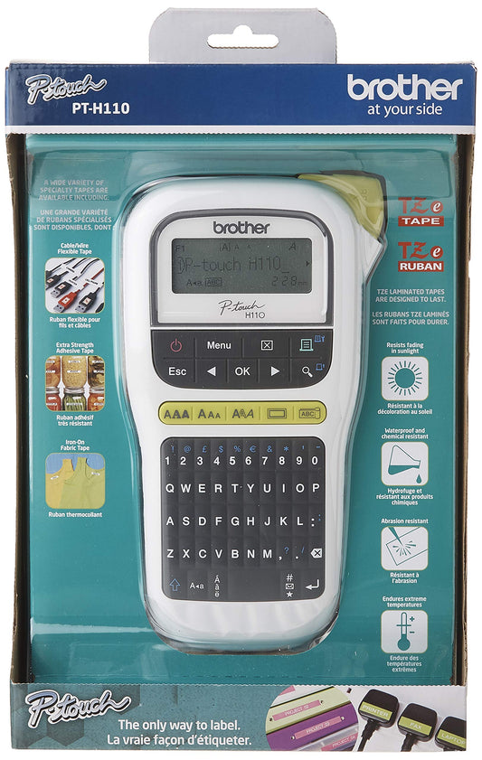 Brother PTH110 Easy, Portable Label Maker-Handheld Labeller, Black/White (190" (W) x 104" (D) x 286" (H))
