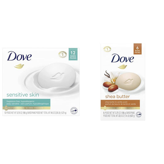 Dove Beauty Bar More Moisturizing Than Bar Soap for Softer Skin, Fragrance Free, Hypoallergenic Sensitive Skin With Gentle Cleanser