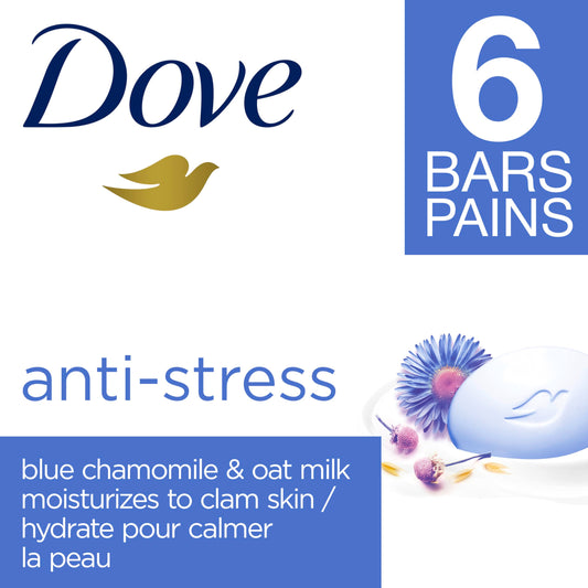 Dove Beauty Bar Gentle Cleanser Moisturizes To Calm Skin Anti-Stress Cream Bar Gentle Bar Soap Cleanser Made With 1/4 Moisturizing Cream 106 g 6 count