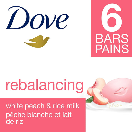 Dove Beauty Bar Gentle Cleanser Moisturizes To Help Rebalance Skin Peach and Rice Milk Gentle Bar Soap Cleanser Made With 1/4 Moisturizing Cream 106 g 6 count