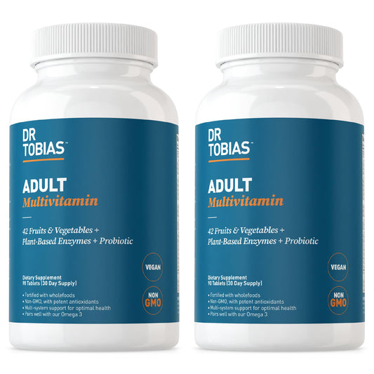 Dr. Tobias Adult Multivitamin for Women & Men, Energy & Immune Support from 42 Fruits & Vegetables Plus Probiotics, Comprehensive Daily Multivitamins for Men & Women, Non-GMO, 90 Tablets, 30 Servings