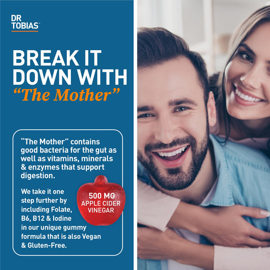 Dr. Tobias Apple Cider Vinegar Gummies 500 mg with The Mother of Apple Cider Vinegar Supplements Vegan, Gluten-Free & Non-GMO -60 Gummies