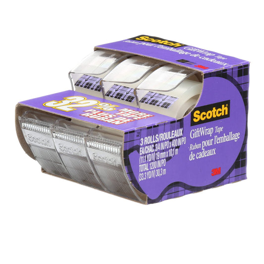 Scotch Tape Gift Wrap Tape, 19mm Wide x 10.1m, 3 Rolls in Dispensers