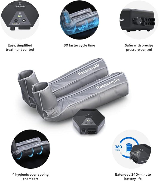 Therabody RecoveryAir Prime Pneumatic Massage Boots with Advanced Compression - Simplified Deep Tissue Leg and Calf Massager with TruGrade & FastFlush Technology (2nd Gen, Medium)