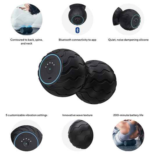 Therabody Wave Series Wave Duo - Ergonomically Contoured Foam Roller. Bluetooth Enabled Muscle Roller for Your Back, Neck & Spine with 5 Customizable Vibration Frequencies in Therabody App